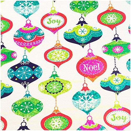 Studio : JAM Paper Envelope Publisher : JAM Paper Envelope Binding : Office Product Product Description JAM Paper® Glittering Ornaments Wide Christmas Wrapping Paper features a white color and a bright, glimmering pattern of colorful, vintage style Christmas ornaments! These pointed bulb ornaments are blue, green, red, pink, and orange and are patterned with snowflakes and designs. Some of the ornaments read "Joy" and "Noel". This beautiful gift wrap is sold on individual rolls. Each roll contains 40 square feet of wrapping paper. When entirely unrolled and flattened, the paper on each of these rolls measures 40 inches x 12 feet in size. Use this colorful and high quality wrapping paper for any and every gift this holiday season to make the space under your tree bright and festive! Size: 40 in x 12 ft. ( 40 Sq. Ft.) | Color: Glittering Ornaments | Quantity: 1 (Sold Individually) 0