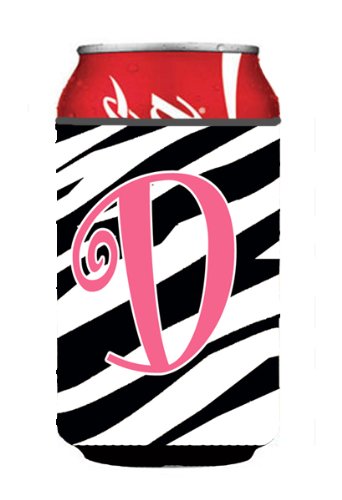 Letter D Initial Monogram - Zebra Stripe and Pink Can or Bottle Beverage Insulator Hugger