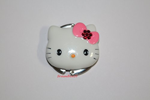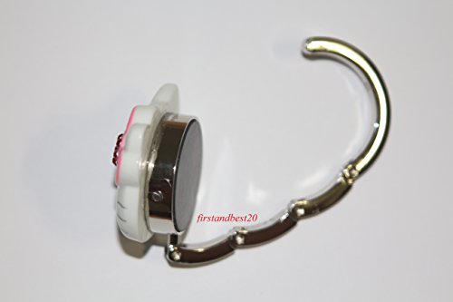 Convenient when going out with friend and family, help you to hold your bag/purse while you can enjoy your meals or your drink. Just put the holder in your purse/bag, easy to carry around and take out to use any time you need. Place the round head on the top of the table and simply hang your bag/purse on the hook. Material: Iron, Zinc, Alloy, Acrylic Round head diameter: ~3.0cm Hello Kitty Head: ~4.5cmFeature