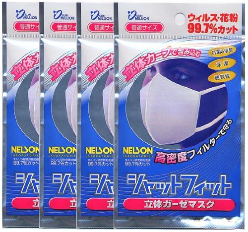 -. Feature : 内容:1枚入りの商品を4個セットでお届けいたします。 / 【5層構造】(1層目)ポリエステル&コットン:洗濯してもシワになりにくい。(2層目)高密度フィルター:ネルソン研究所の試験を経た99.7%ウイルスを防御する。(3層目)高性能フィルター:顔にぴったりフィットする形状保持機能。(4~5層目)高機能ガーゼ:無機抗菌剤を結合した2枚重ねのガーゼ / 感染力の高いウイルス、不快な花粉も99.7%カット(アメリカソルトレークシティの研究機関、ネルソン研究所にて測定された数値) / ガーゼマスクですので、洗って何度も使えます。4枚でローテーションできます。