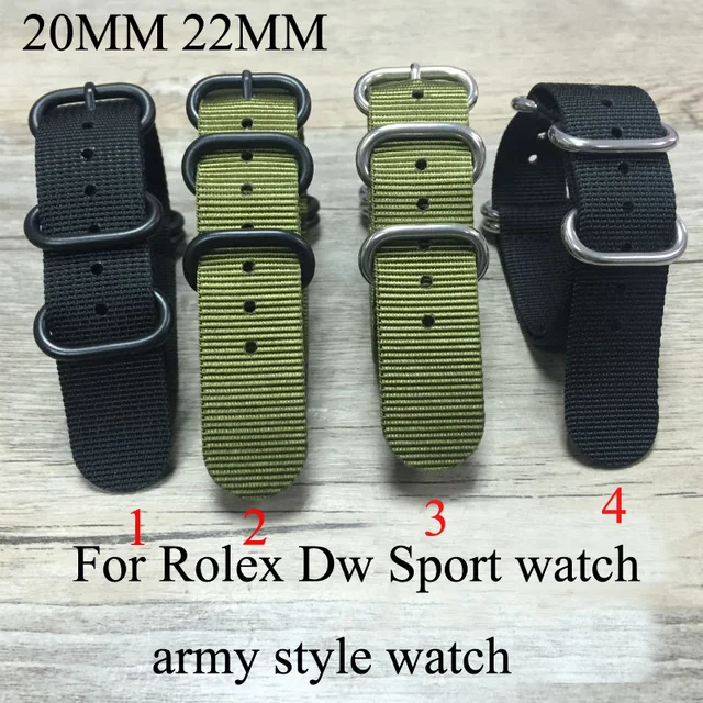 | [해외]20 22 미리메터 블랙 녹색 방수 나일론 캔버스 시계 스트랩, 나토 손목 럭셔리 밴드, 무료 시핑 |