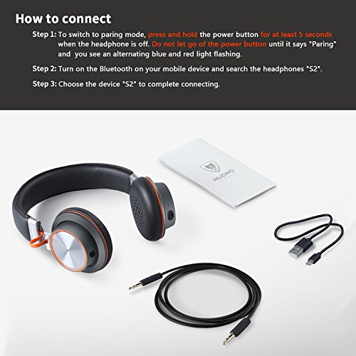 NUBWO S2 V4.1 Bluetooth kabellose On-Ear HiFi Stereo Kopfhorer mit Mikrofon fur Handys, Tablets, Laptops & PC Schwarz