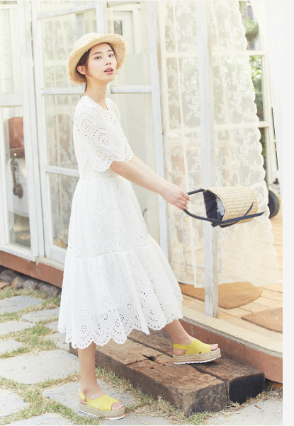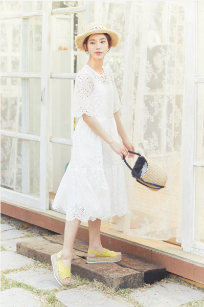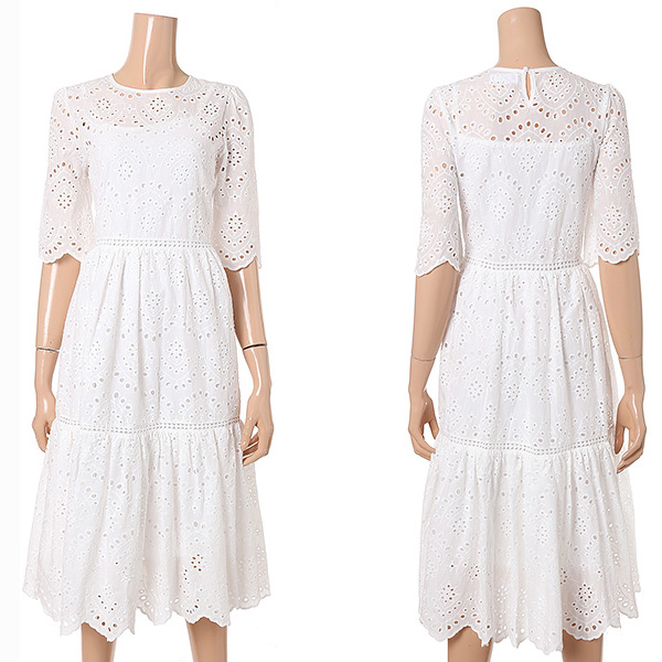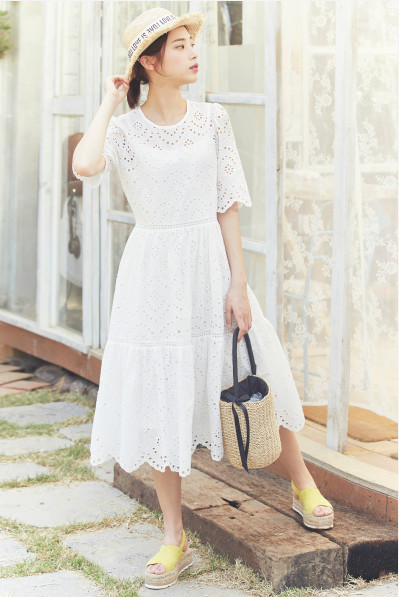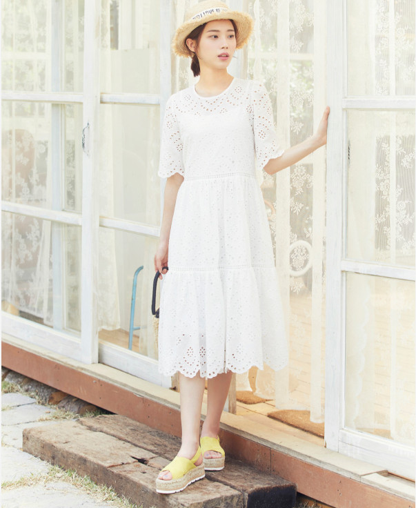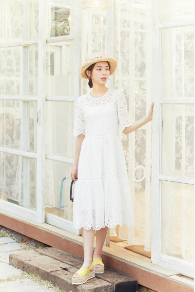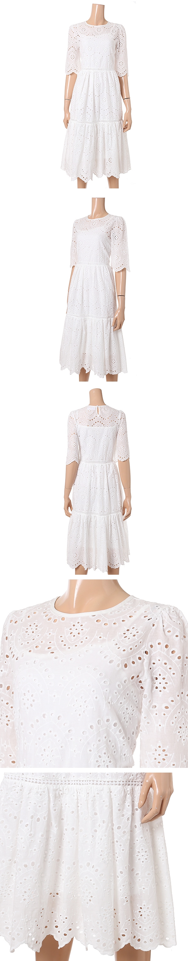 밑단 디테일로 포인트를 준 반팔 원피스 입니다.