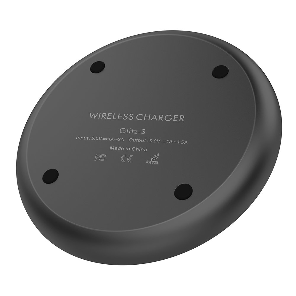 Anti-skid stand design specifications for each wireless charger at 48 hours of anti-aging test to protect long-term use to lead to zero failure of slim design: Input: 5V / 1A - 2A; Output: 5 V / 1A