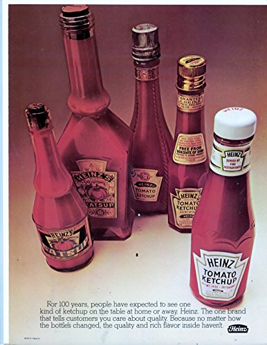 Heinz Ketchup Vintage Magazine Ad- "For 100 years, people have expected to see one kind of ketchup on the table at home or away. Heinz"