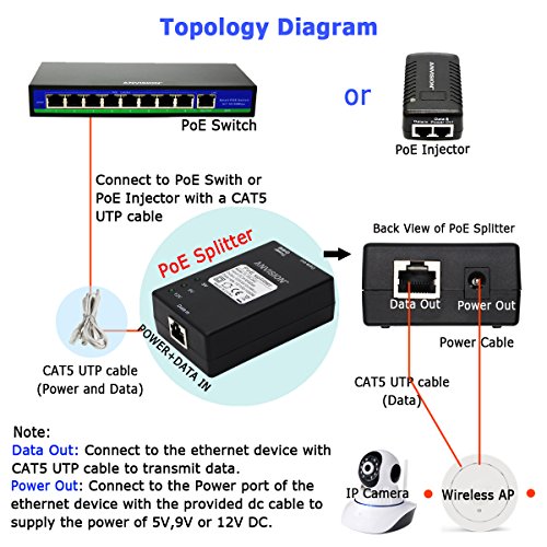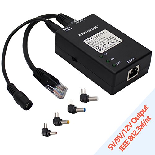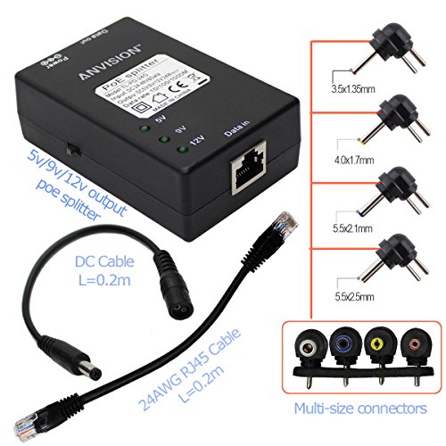 ANVISION Active Gigabit PoE Splitter Adapter with Multi-Size Tips, 10/100/1000Mbps IEEE 802.3af Compliant, DC 5V 9V 12V Power Output for IP Camera Wirelss AP Voip Phone