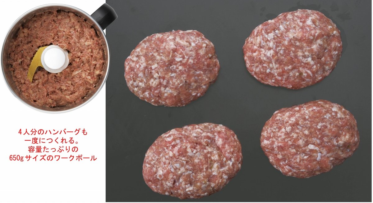 ● Four hamburgers (150 g × 4 pieces) and 32 dumplings (20 g × 32 pieces) can be made at once.