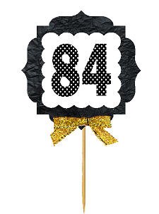 84th Birthday / Anniversary Gold Ribbon Hand Crafted Novelty Cupcake Decoration Toppers / Picks -12ct