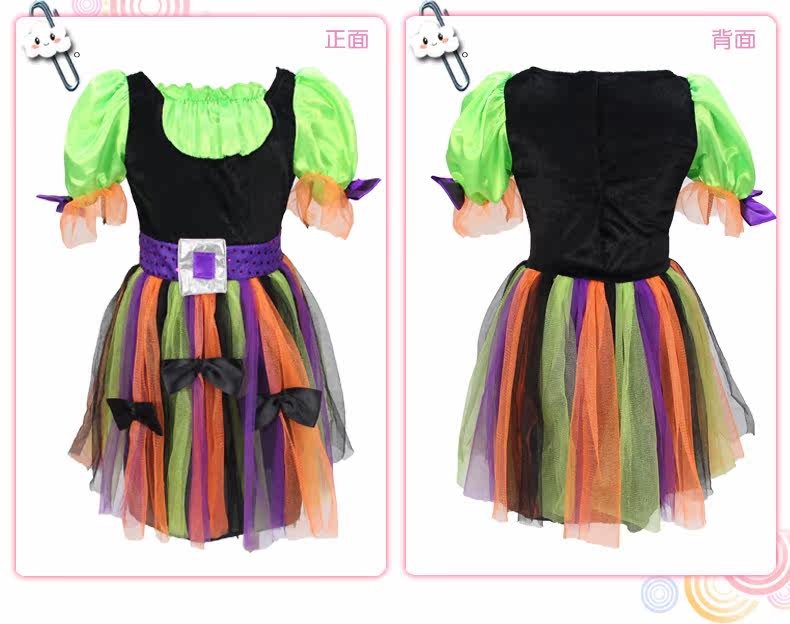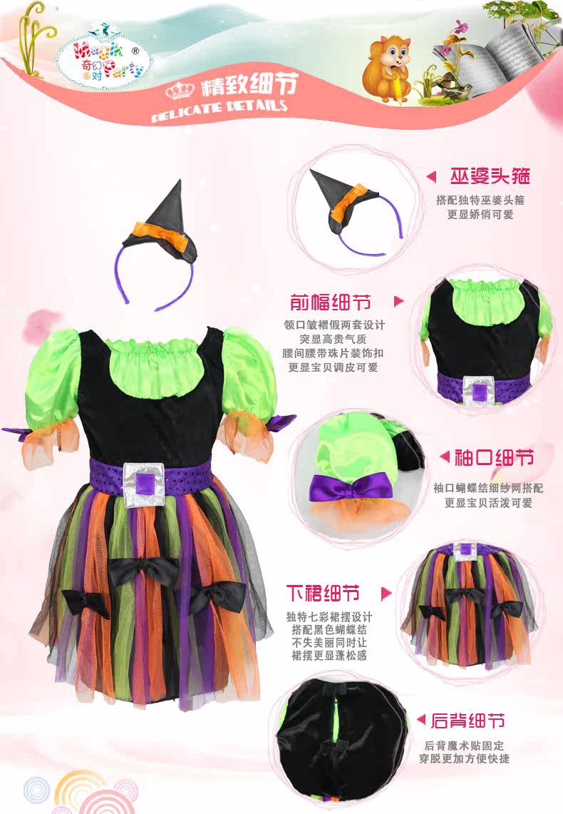 万圣节Cosplay女童巫婆裙角色扮演服饰儿童化妆舞会女巫演出服装