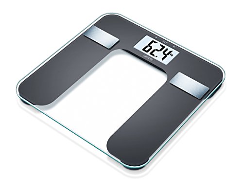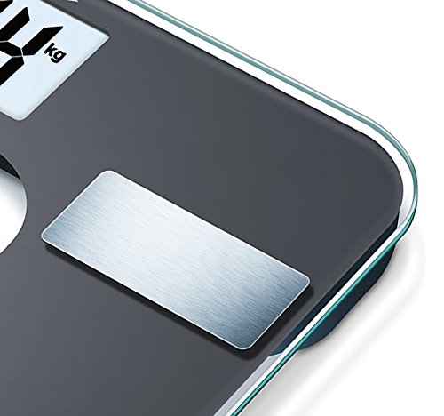 -. Feature : Ermittlung von Körpergewicht, - fett, -wasser, Muskelanteil und BMI / Mit Elektroden aus gebürstetem Edelstahl / Gut lesbares LCD-Display, Ziffernhöhe: 38 mm / Trittfläche aus Sicherheitsglas / 5 Aktivitätsgrade einstellbar, 10 Benutzerspeicher