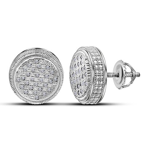 -. Title : Sterling Silver Mens Round Diamond 3D Circle Cluster Stud Earrings 1/6 Cttw