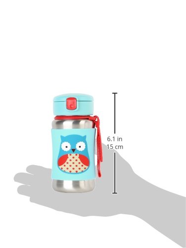 Skip Hop Baby Zoo Little Kid and Toddler Feeding Travel-To-Go Insulated Stainless Steel Straw Bottle, 12 oz, Multi Otis Owl