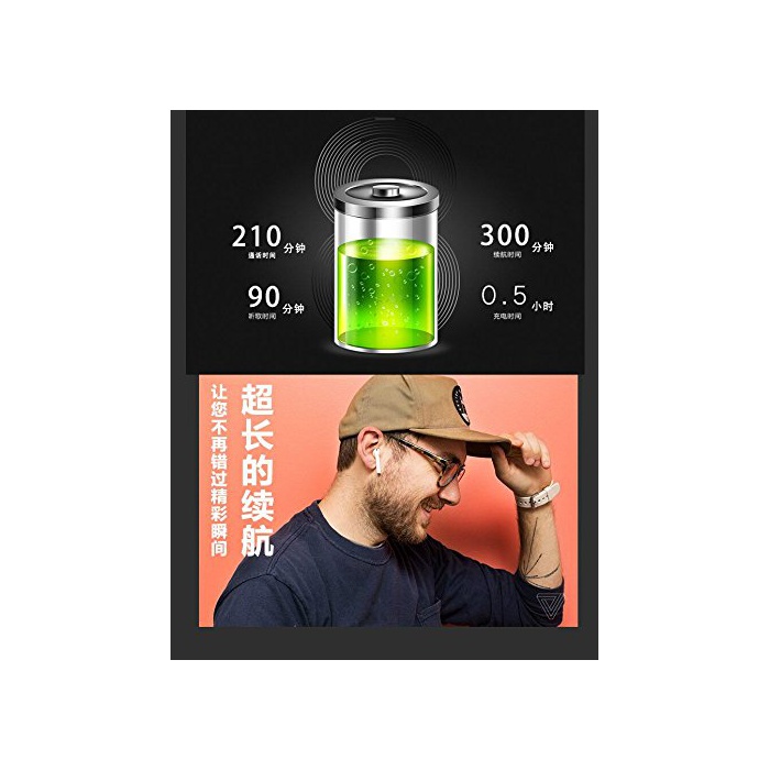 주의:충전하는 시 이어폰을 사용할 수 없다.1.Bluetooth이어폰 본체는 55mA의 전지를 탑재하고, 1회 풀 충전 하면 분(쪽,편)이 사용 사용 상황으로 5H이상의 재생 시간을 제공 하고 있습니다. 양귀라면 2-3H의 재생 시간이 있다.대기 시간은 100H에 도착합니다