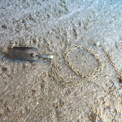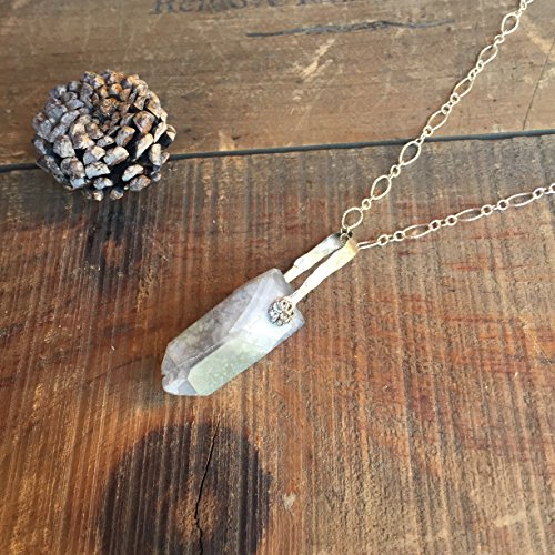 -. Title : Out of the Blue Necklace - Quartz Point & Hand hammered Sterling