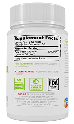 -. Title : Extra Virgin 2000mg Organic Cold Pressed Coconut Oil Supplement By Kenko Bio - Capsules That Support Weight Loss, Hair Growth & Skin Health - GMO, Gluten & Dairy Free Source Of MCFA - 100 Softgels