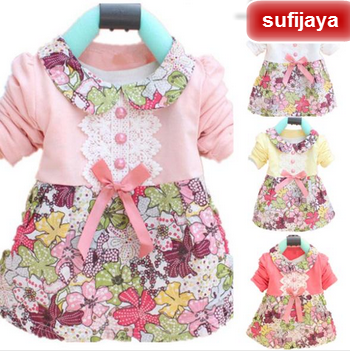 gaun bayi New hot selling beautiful 0-2thn baby girls bow Floral Dress One piece, princess dress KID SJA3237482734823 HSL qty000