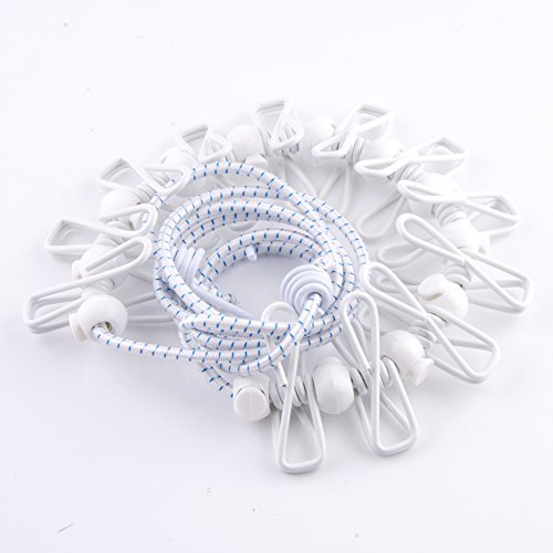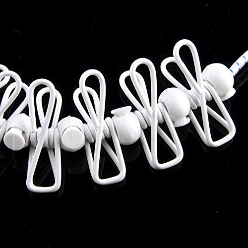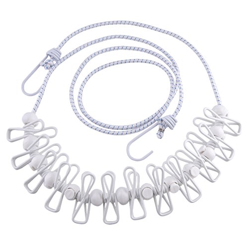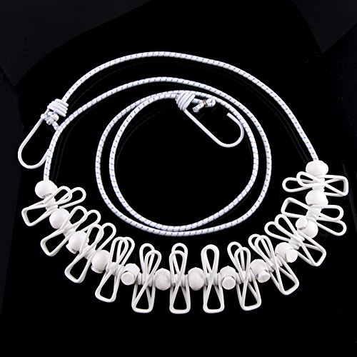 BINGONE Elastic Clothesline with 12pcs Adjustable Clothespins Windproof Travel Portable White