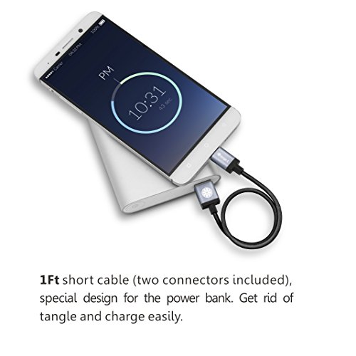 1ft short cable (two connectors included): easy for carrying and convenient for charging with your power bank. Save space for your office. One year warranty and friendly easy-to-reach customer service available.