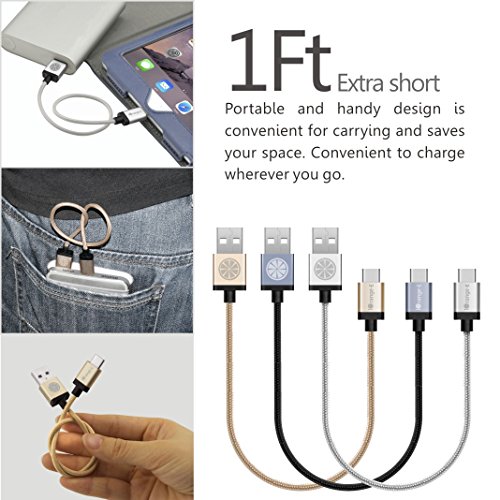 Type C, iOrange-E 1ft USB C To USB Braided Cable for 2015 New Macbook 12'', ChromeBook Pixel, OnePlus 2, Nexus 6P, 5X, Lumia 950, 950XL, Nokia N1 Tablet and Other USB C Devices, Black
