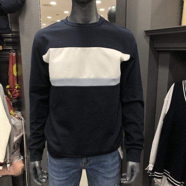 니트원단으로 포인트를 넣은 맨투맨 제품입니다.코트, 자켓 이너로 또는 슬랙스나 면바지에 깔끔하게 입으실 수 있는 제품입니다.