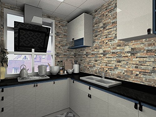 Blooming Wall Modern Faux Brick Stone Textured Wallpaper Roll Yellow Multi Brick Blocks Home Room Decoration 20.8" x 393.7" 403