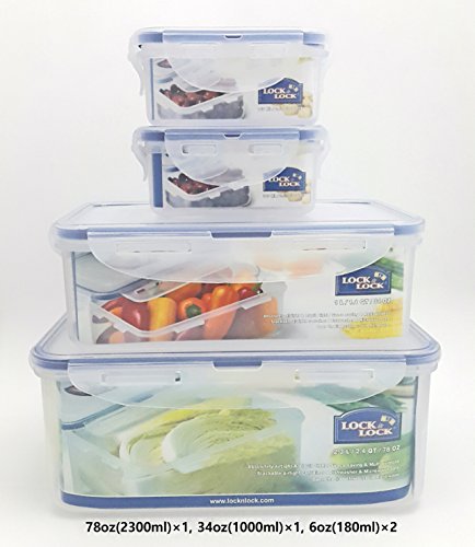 Lock & Lock Plastic Food Storage Airtight Container Set (2300ml/78oz+1000ml/34oz+(180ml/6oz×2))