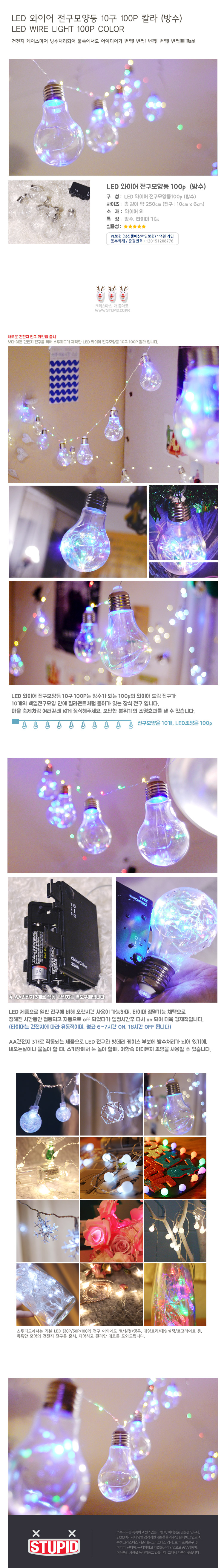 LED 와이어 전구모양등 10구 100P 칼라 (방수)