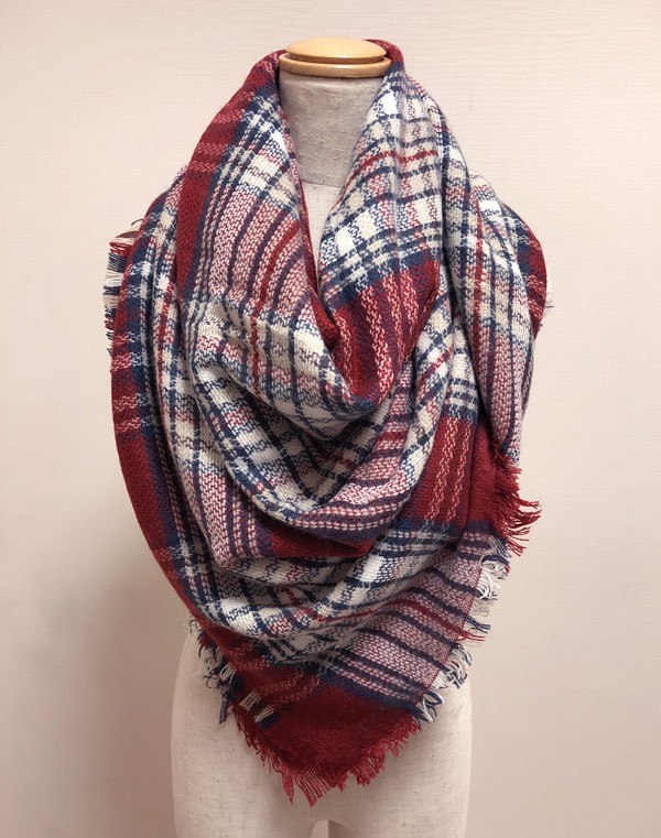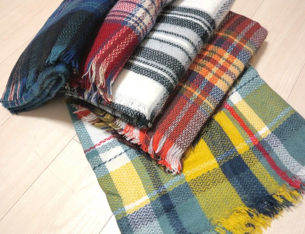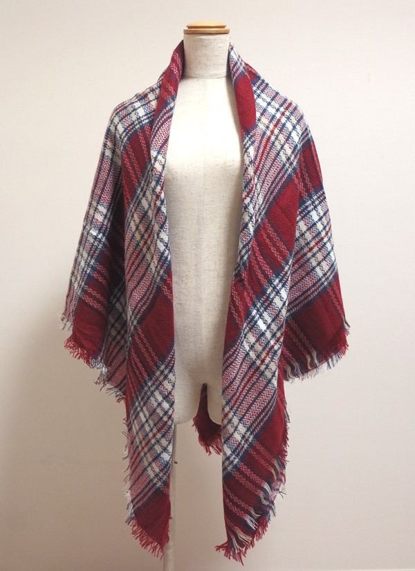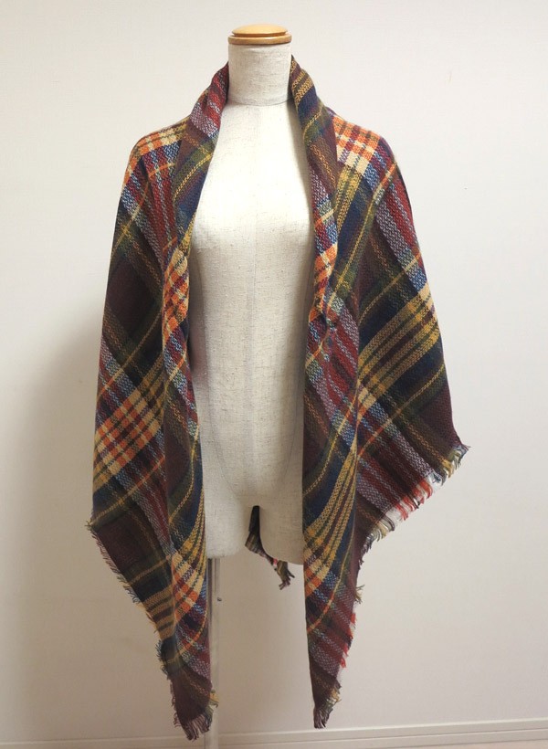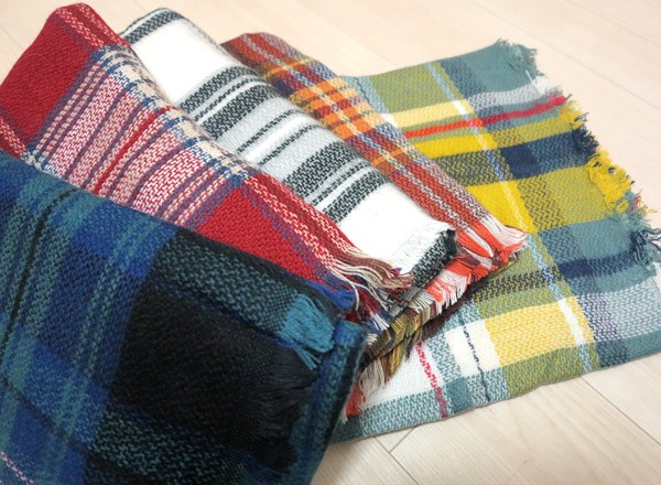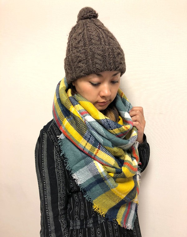 起毛感のあるふんわりとした肌触りが嬉しい正方形の大判ストール トレンドのチェック柄を揃えました☆ ソフト地でしっかりあったかい、ぜったい1枚は持っておくべき冬の定番アイテムです。 三角折り使いなら、巻きやすく、肩から羽織ってもgood。 首元にはアフガン巻きでボリューミーにまとめると、可愛く小顔効果あり、防寒効果ありの◎。 お出かけのおしゃれにはもちろんのこと、肩掛け、ひざ掛けなど、おうちでも、オフィスでも、気軽に使えて、大活躍すること間違いなし♪ カラーは、ブラック&ホワイト、ワインレッド系、ネイビー系、イエロー系、ブラウン系の5色。大判だからメンズにも人気です☆ |