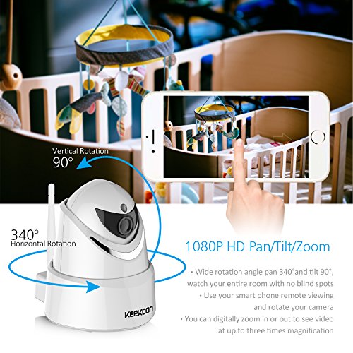 Keekoon 1080P Wireless/Wired IP Camera ,Baby Monitor with Two-Way Talk & Pan/Tilt & Night Vision[White-005]