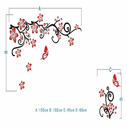 -. Title : Alicemall Red Flower TV Wall Sticker Acrylic Red Blossom Floral 3D Wall Sticker, Chinese Style Removable TV Wall Art Decal Wall Mural For Living Room Decoration, 47 x 27.5 Inch