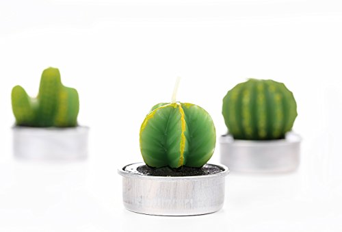 Decorative Scented Cactus Tealight Candles for Party Birthday Holiday Wedding Dinner, Green, Set of 6