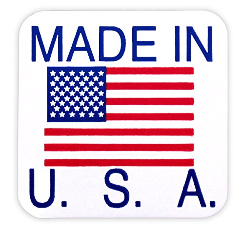 "Made in USA" Stickers in Dispenser Box | 1" x 1" Square | Red, White and Blue American Flag - 500 Permanent Adhesive Labels per Convenient Dispenser Box