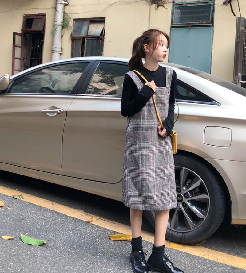 ♢ポイント♢ 巻きスカート風デザインのジャンパースカートです。 きれいめコーデにも◎