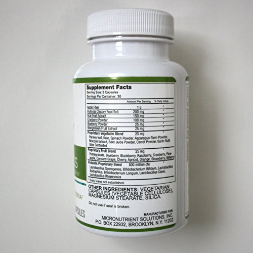 PREBIOTICS BLEND: + Apple Fibers - Whole food fibers help formula transit through GI, encouraging maximum micronutrient absorption through gut wall + Chicory Root Inulin - Aids repair of gut wall. May enhance growth of intestinal bifidobacteria. Not digested in upper GI tract helping provide maximum benefit to colon, small intestine + Acai Extract - May help soothe digestive tract + Mangosteen Extract - Superfruit antioxidant supports calm, clean gut + Cranberry & Blueberry Fruit Powders, Organic Vegetable Juice & Fruit Berry Blend - Superfoods that soothe, feed healthy GI tract