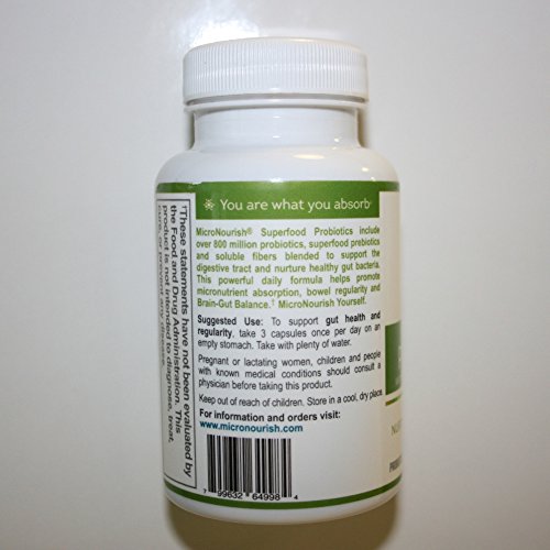 You Are What You Absorb.® MicroNourish Superfood Probiotics + Prebiotics includes a powerful blend of over 800 million cfu healthy bacteria, organic soluble fibers and nutrient-rich superfoods to help balance the digestive tract, increase absorption of micronutrients, and promote bowel regularity.* + Supports diets for Constipation, Diarrhea, Candida, Paleo +