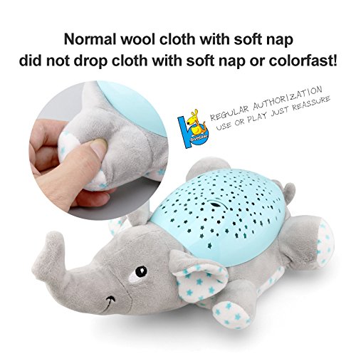 Studio : SOWOFA Publisher : SOWOFA Binding : Baby Product Product Description Product made in friendly plastic ABS material and good quality cartoon and Made by soft Embroidery. Star projection effect can be showed multi colorful project on the night. High guarantee trumpet can play more than 50 beautiful songs. Let the babies enjoy the natural sound.(Much Mix the sounds of nature animals, No noise is more pleasant).Cute animal model can pacify baby 's feeling and let the babies fall in sleep peacefully. Product size: length:26-34 cm width:19-29 cm height: 9-12 cm Product weight: 514g Packing size:30*19*20 cm colour:Pink, green, grey, blue, yellow , color may vary Material :ABS Plastic Age Range:18 months Gender Range:Boys and girls Appearance:Elephants, hippos, frogs, seals, butterflies, turtles Power by: 3 x AA battery(not included)