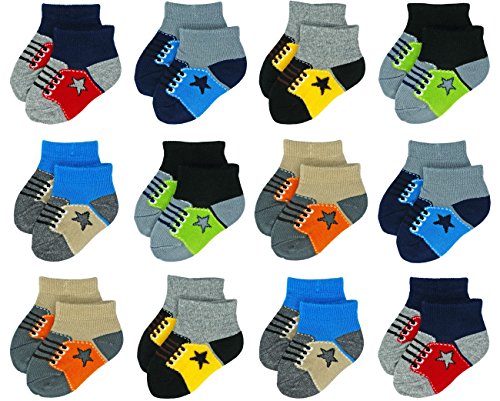 Liwely 12 Pairs Baby Boys Socks, Ankle socks for 3 - 12 Months Infants, Sneaker socks