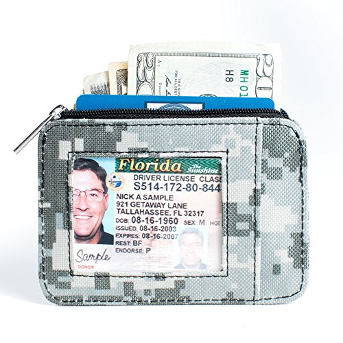 -. Feature : Multiple slots; ID Slot / Zippered compartment / Colors Available: Digital Desert and Forest / Product Dimensions: 3.25 inches x 4.675 inches x 0.2 inches / Product Weight: 1.0 ounce