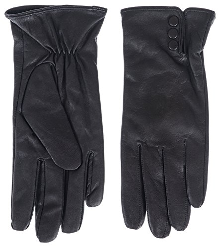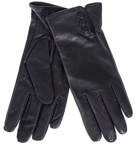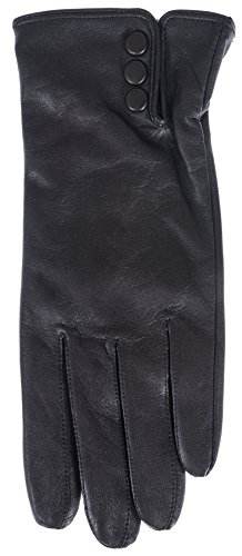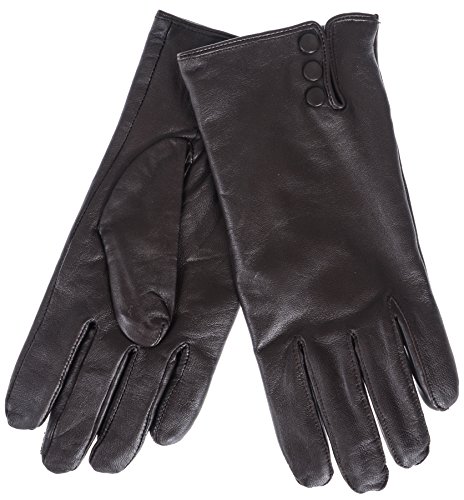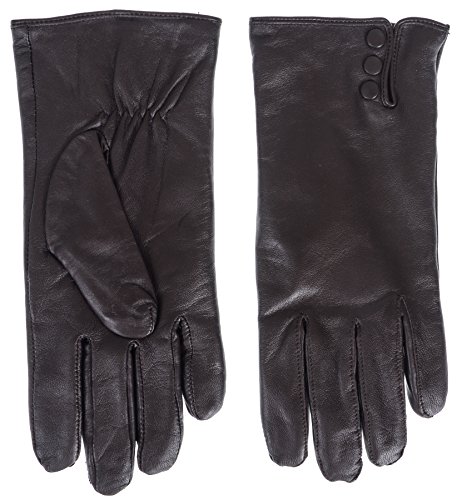 Product DescriptionLadies Goatskin Leather Glove with Covered Snap and Side Vent. Plush terry fleece Lining0