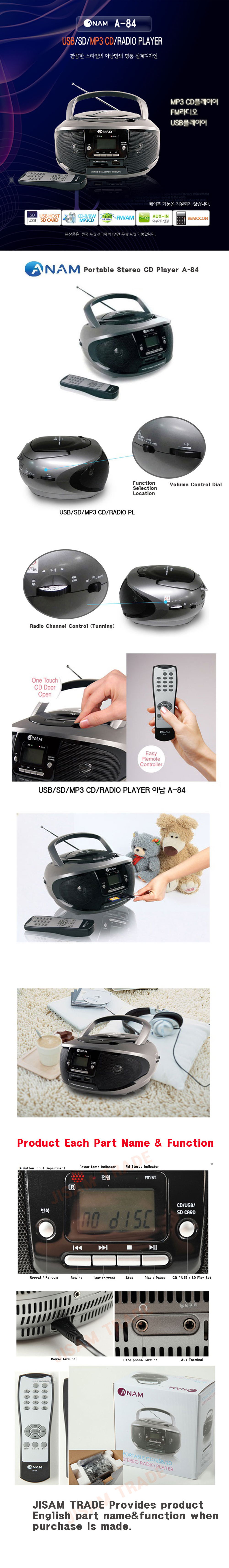 FMラジオ時計のUSB SDとAUXラインイン互換性のあるスマートフォンとANAMポータブルステレオCDプレーヤーA-84