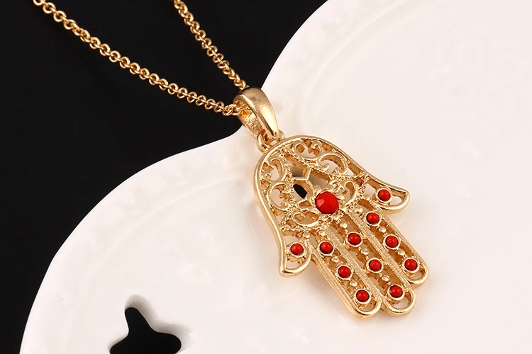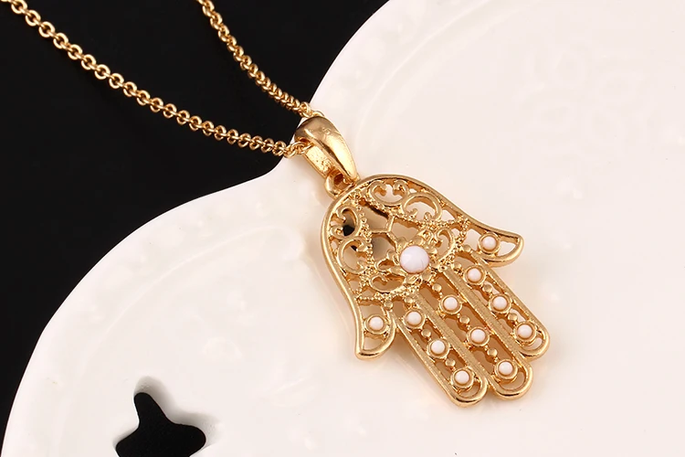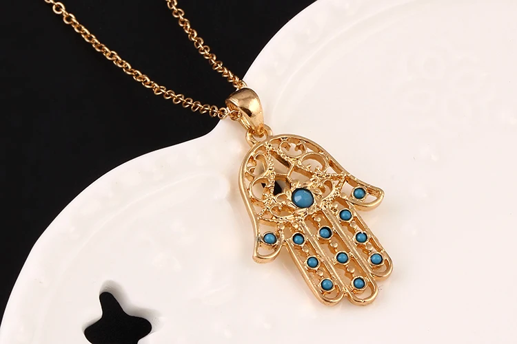 17KM Classic The hand of Fatima hamsa Necklace jewelry Pendants Metal Chain Palm Statement Necklace Fashion for women colar CS13