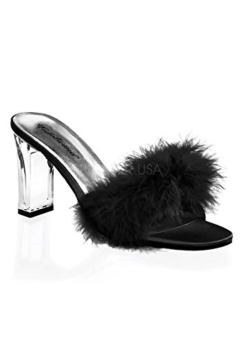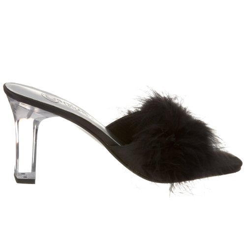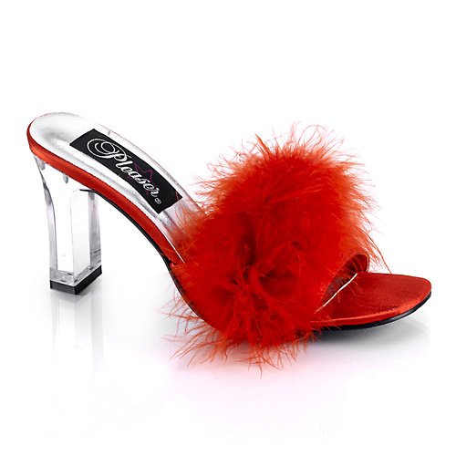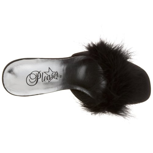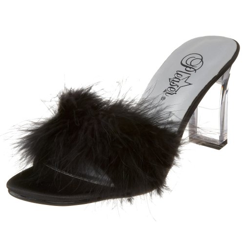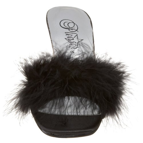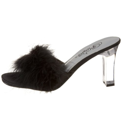 Amazon.com Pleaser's Romance slide has boudoir appeal with its sensational feathered band and light-as-air heel. Its very flattering profile commands attention for your lovely toes, so pair this slide with matchstick denim, minis, or pretty frock for the desired results. 0