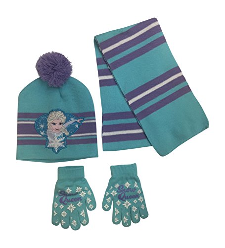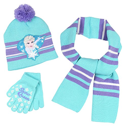 Disney Frozen Anna and Elsa Knit Hat, Gloves, and Scarf Set Snow Queen Size 4-16