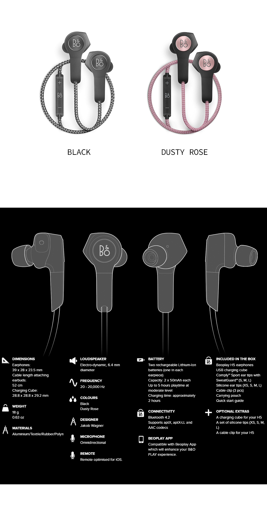 B&O PLAY by Bang & Olufsen Beoplay H5 Wireless Bluetooth Earbuds