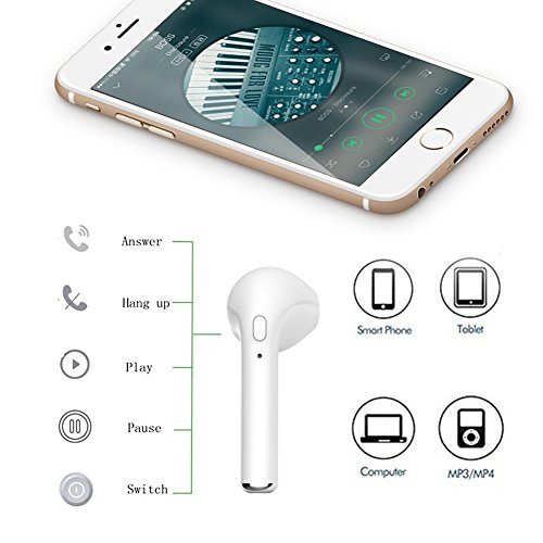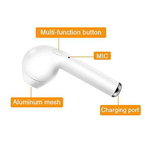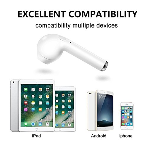 -. Feature : Great Battery Life: The new and improved lithium polymer battery allows seamless enjoyment of music for up to 4 hours on a single charge and 100 hours of stand-by, only take 1.5 hours to fully charged, battery status displayed on IOS device / With built-in Mic, great for hands-free calling, listening to podcasts and music, news, etc., connect seamlessly with all Bluetooth enabled devices / LATEST BLUETOOTH V4.1 WIRELESS TECHNOLOGY - It can connect with 2 different devices simultaneously, would connect automatically with a phone paired previously. / EASY TO USE: Compatible with most Bluetooth enabled devices, such as Apple iPhone, Android Samsung, etc., pairing up just take a few seconds. as iPhone 6/6s 6s plus/ 7/ 7 plus/ Samsung S7 /iPad, Kindle, etc. / PAINLESS WEARING -- small size and light weight, Only 5 grams, ergonomic wireless earbud design,ensures a comfortable listening and calling experience