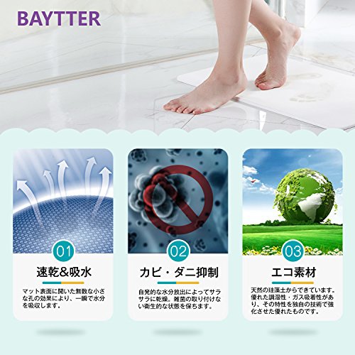 원본상품명: BAYTTER 珪藻土バスマット 吸水 速乾 消臭 お風呂 足拭き マット 白/灰色 約60x39x0.9cm