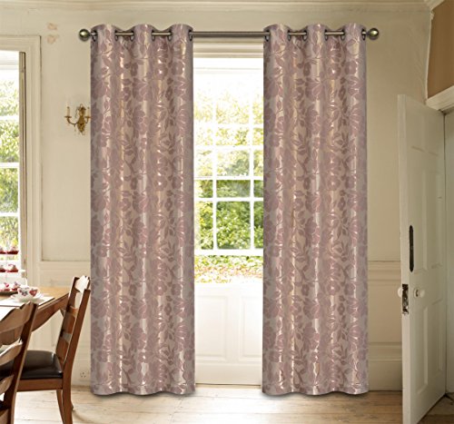 A Laura Ashley Duchess Window Curtain is a quick, simple update to suit any type of decor. Featuring a two-tone floral pattern in soft shades of taupe and white, this panel is versatile enough for practically any room. With a metal grommet top for easy installation and lovely drape, this curtain is sure to delight. Woven Jacquard is 100% polyester, machine wash cold, gentle cycle, tumble dry low. Grommet top panel pairs are available in 76"x84"L and 76" x 96"L.Feature