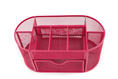 Mesh Desk Organizer Office Supply Caddy Drawer with Pen Holder Collection Pink