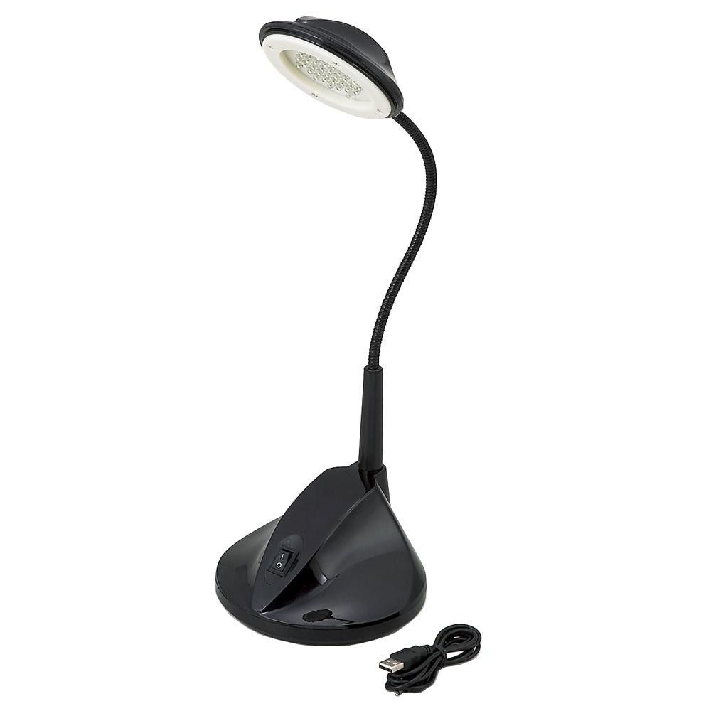 36灯のLED電球搭載のUSB電源で使用するエコ仕様の電気スタンドです。単1乾電池3本(別売)でも使用することができます。 |