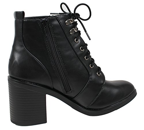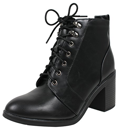 (City Classified)/Women's/Boots/DIRECT FROM USA/City Classified Women's Almond Toe Lace Up Combat Chunky Heel Military Ankle Boot